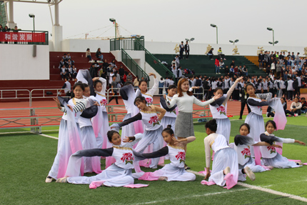 高二年级的老师合唱《众人划桨开大船》,声音整齐,内蕴深厚;高一年级学生经典诵读,雅正和谐,韵味无穷;高一年级师生混合的走秀表演,节奏感强,形式新颖;高一、高二年级女教师舞蹈,舞姿曼妙,翩翩若仙;学生混合街舞,劲爆有力,彰显活力……