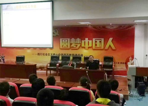 韩教授主讲的题目是“探索化学化工未来世界”,重点讲述化学与化工专业的差别,化学工业的重要性、现状和未来,主要介绍我国化工行业在国际上的地位、发展趋势、重点发展领域以及高端化学化工新技术的研究探索。