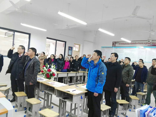 会议首先完成了党员民主生活会的四项规定动作,全体党员起立面对党旗重温入党誓词、全体党员按月缴纳党费、全体党员集体诵读党章党规、党支部提名全体党员表决评选“每月一星”。经过年级全体党员教师的民主评议,高二年级(1) 部党支部“元月之星”为心理姜玉梅老师。