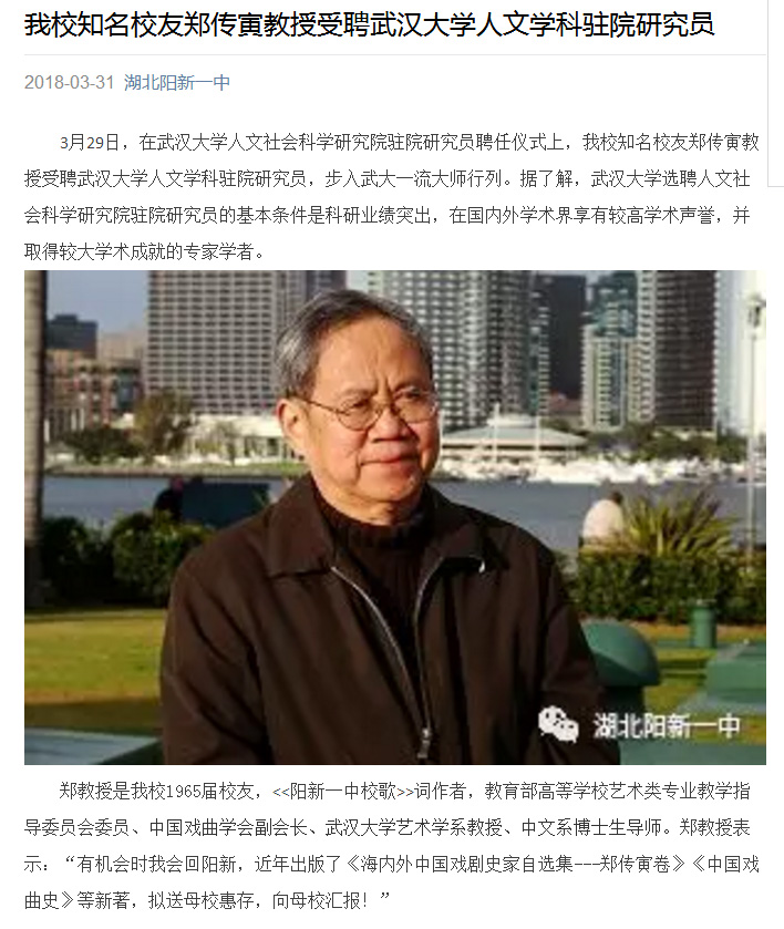 校友郑传寅受聘武汉大学人文学科驻院研究员