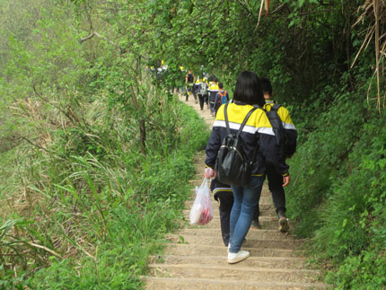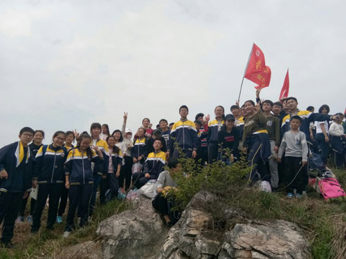 这是一次磨炼之旅。从早八点出发,到下午将近四点返回,历经近八个小时。从登山,到返程,行程约三十公里。有的同学鞋磨破了,有的腿走痛了,甚至有的同学腿抽筋了,有的同学脚崴了,有的同学胸闷(马一同学第一次登父子山因胸闷而中途放弃)……没有任何因素能阻止,552名同学全部登顶。