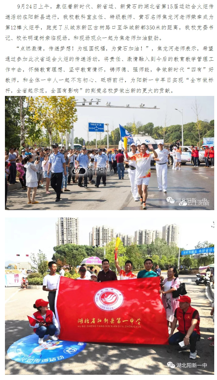 阳新一中焦龙河老师参加湖北省第15届运动会火炬传递活动