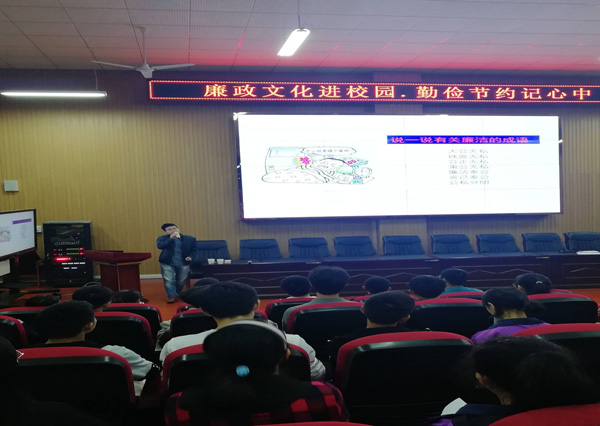 主讲老师校团委副书记陈湖庚引经据典,从中华传统美德切入,从学生生活谈起,阐述了廉洁文化的内涵,倡导了勤俭节约的美德。对于与会的全校团员来说,这是一堂有意义的团课,也是一堂别开生面的班会课。班会课互动有度,气氛热烈,效果显著。