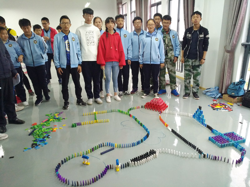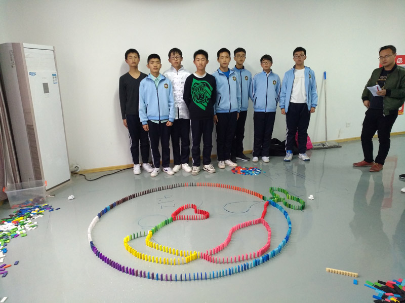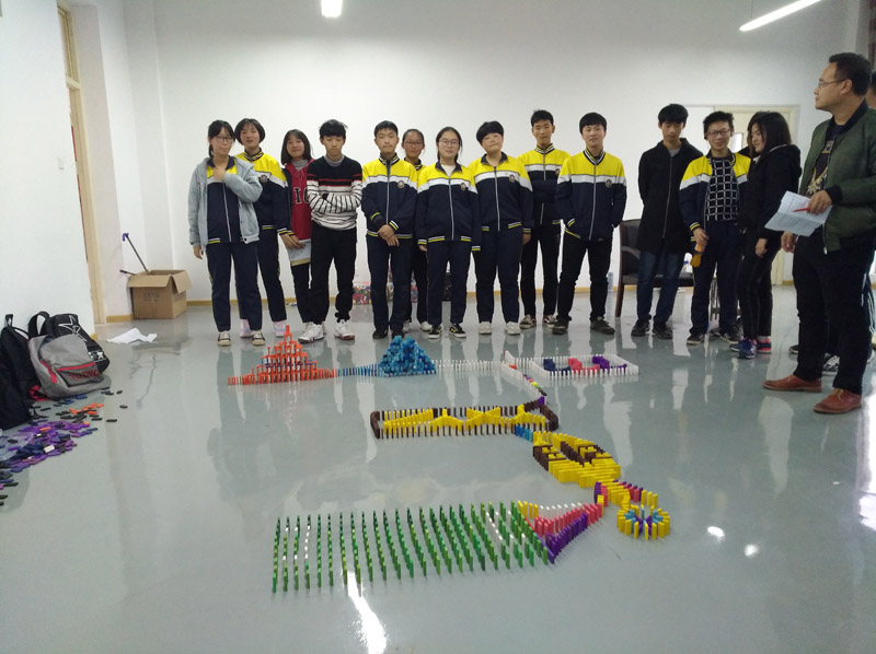 多米诺骨牌发源于中国,在欧美社会中则蔚为流行,是一种综合德智体美劳的运动,可以培养当代中小学生的团队协作能力,考验学生体力、耐心、意志力和临场应变能力,提高学生的动手能力。在第五届体育科技文化艺术节中,我校再次将多米诺骨牌纳入科技比赛项目内容,比赛于11月22日下午2:30在新校区至高楼三楼机器人实验室举行。经过紧张、激烈、漫长的比赛过程,评委从骨牌倒塌情况、图案设计和寓意演讲等几个方面进行打分,依据平均分高低依次决出特等奖团队一个、一等奖团队两个、二等奖团队三个。