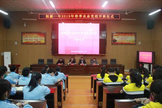 3月24日晚6点30,我校第6期业余党校开班典礼在学校党建讲堂隆重举行。128名学员参加了开班典礼,阳新一中校长、校党委书记明道树,校党委副书记潘龙星,副校长柯美宝,团县委副书记曹冲出席、开班仪式由校党委副书记潘龙星主持。