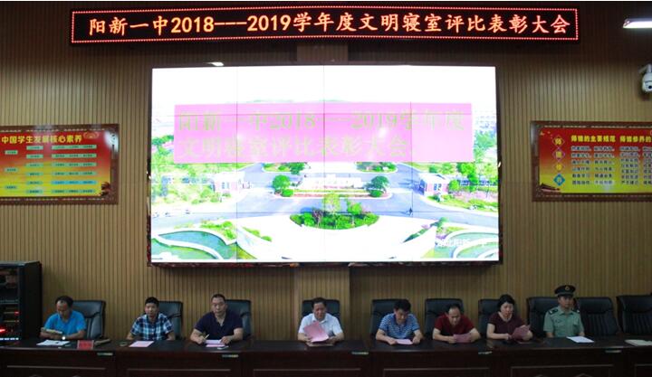 5月27日晚6点30分,风清月明,明德楼报告厅灯火通明,喜气洋洋。学校分管德育工作的柯美宝副校长、德育室主任柏小辉、综治办主任王平心、文明办主任明建华、军事教育总教官柯于常、高一、高二、高三年级分管德育工作的年级书记、和高一高二年级三百多男女生寝室长,欢聚一堂,共同参加综治办和文明办组织的2018一2019年度阳新一中"文明寝室评比表彰大会",倡导文明,激励先进。