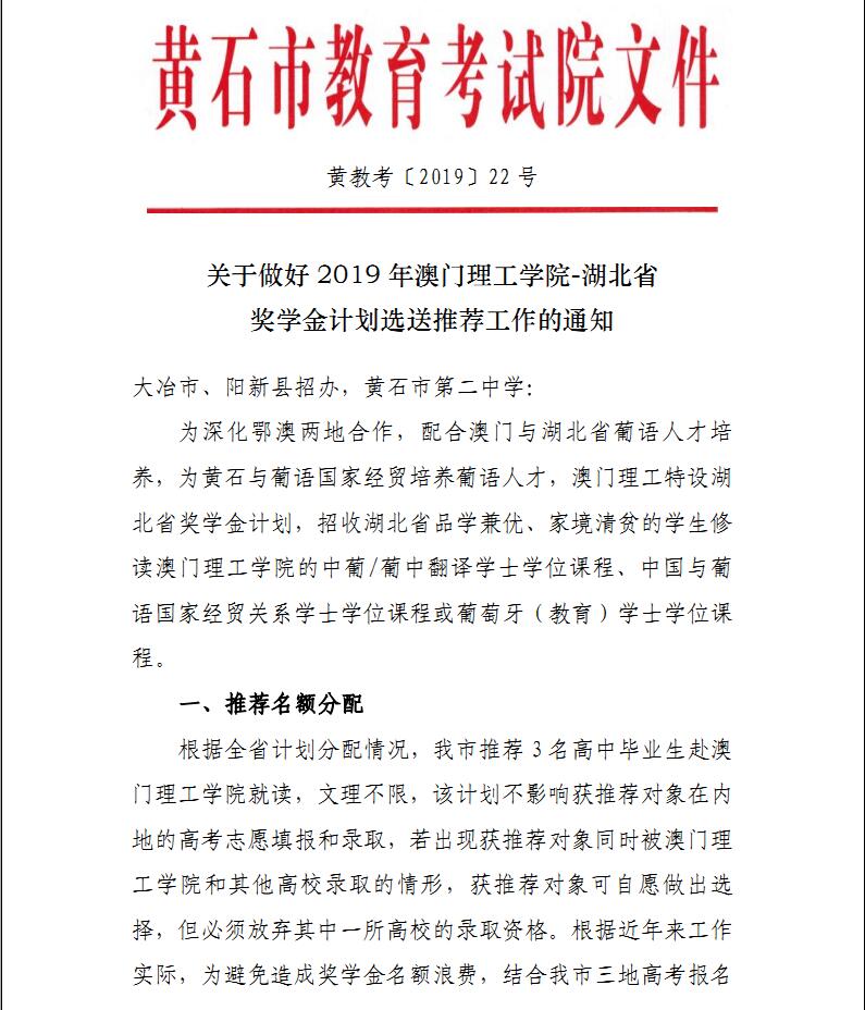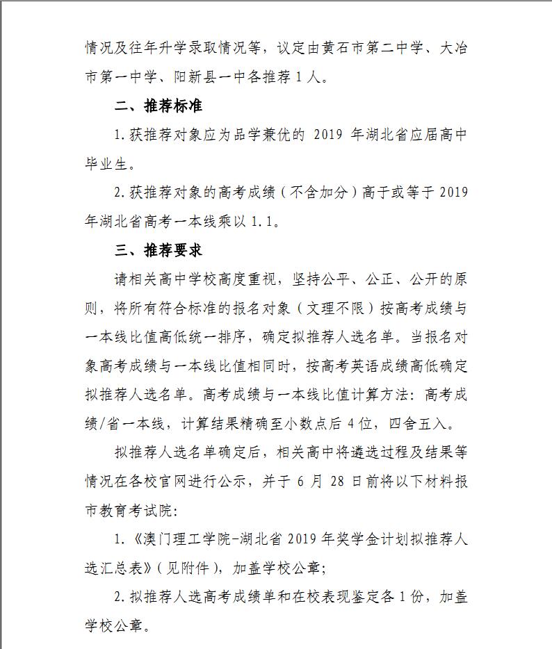 澳门理工学院奖学金计划推荐工作