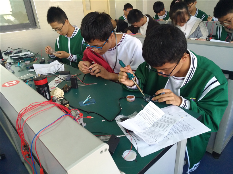 为培养学生的核心素养,提高学生的创新意识、实践能力,我校开设了校本课程——《无线电制作》,为无线电爱好者提供学习机会和自我展示的舞台,课程的主讲教师由我校物理学科组长朱建华老师担任。经过多轮培训、初赛选拔,学校精心选拔了52名同学参加艺术节无线电制作比赛决赛。决赛于11月9日上午在新校区物理实验室进行,内容是现场制作金属探测仪,在紧张激烈的比赛中,最终决出一等奖15名,二等奖25名,三等奖12名(具体获奖名单附后)。