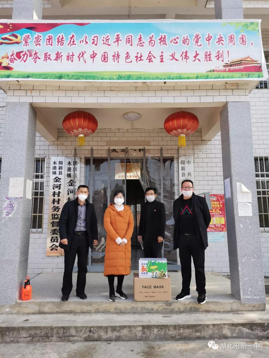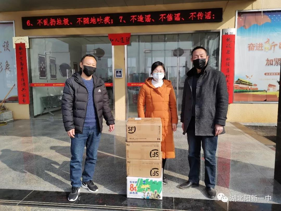 1月30日下午和31日上午,受校委会委托,阳新一中团委书记胡琼带着阳新一中全体教职员工的爱心为我校驻点村良荐村和木港金河村送去一批口罩,84消毒液,测温仪等,将支援社区、驻点村疫情防控工作落到实处。良荐村驻村第一书记邓家宜和城东新区良荐村村支书华东法,金河村驻村第一书记查生月、木港镇镇长许进才和金河村村支书柯善明接受捐赠。