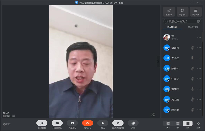 2020年2月24日下午三点,为实现线上教学的全员参与、全面推进、全面督导,落实“五个都不能,即一个级部都不能落后,一个班级都不能散漫,一个学科都不能缺位,一个教师都不能缺席,一个学生都不能忽视”的总要求,我校利用钉钉平台召开了主题为"典型引路,全面推动,促进高三复习备考落实落地"的视频会议。全体校委会成员、教师发展中心全体干部、处室主任(牵头人)、级部主任、支部书记、全校教研组长、高三全体备课组长及典型发言人参加了会议。教务室、高三年级负责会议组织考勤,信息办负责技术支持。会议由我校副校长、新校区高三年级蹲点校长李永红主持。
