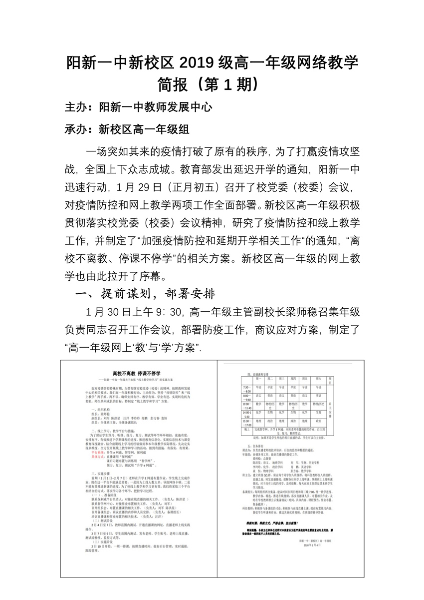 阳新一中新校区2019级高一年级网络教学简报(第1期)
