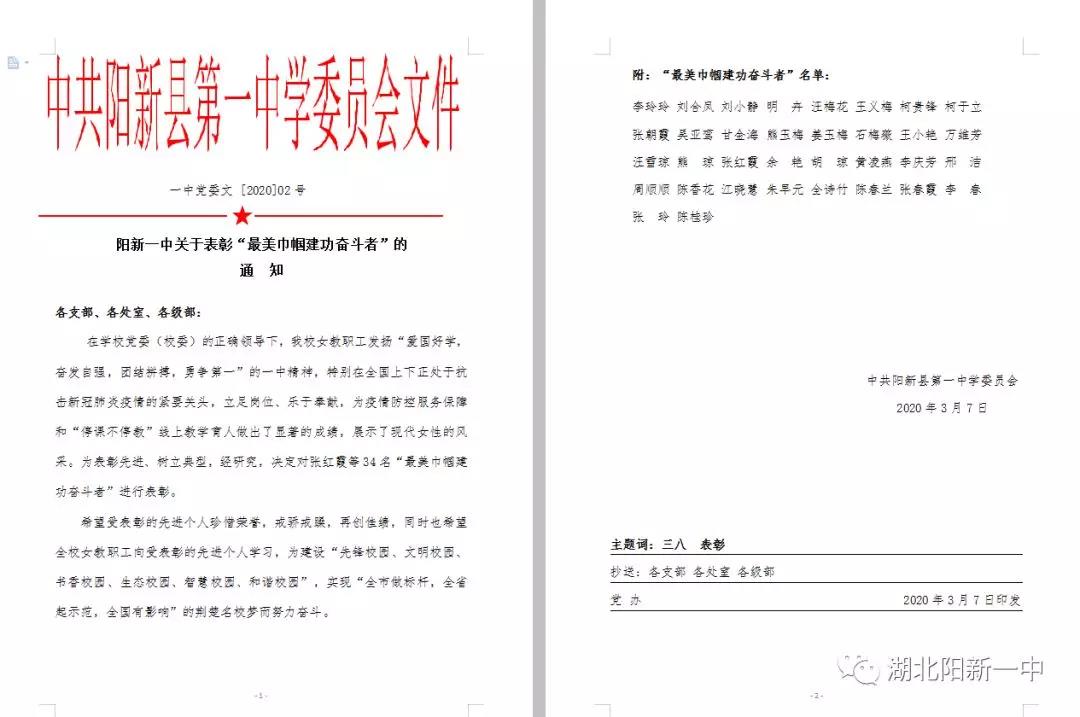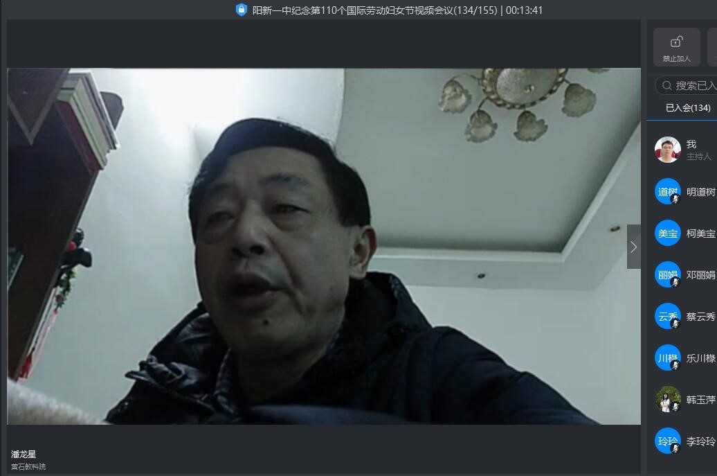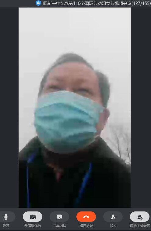 最后明校长为女同胞送上诚挚的祝福,他说:值此非常时期,仅以此特殊方式,纪念表彰。特别祝福各位女同胞,团结一心,守望相助,共克时艰!特别祝愿我“大一中”之“巾帼”不让“须眉”,岗位建功,立德树人!惟愿女同胞们智慧永驻,青春永驻,情怀永驻,爱心永驻!争做伟大时代新女性,展示“大一中”新教师新风采,为我们阳新一中持续发展、快速发展、跨越发展作岀新的更大贡献!