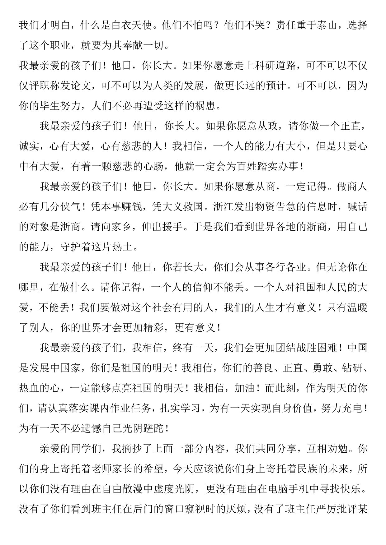 你知道吗?当你在想着学校、想着老师同学、想着自己的责任与未来时,平时总在你身边的班主任真有好些话想对你说。