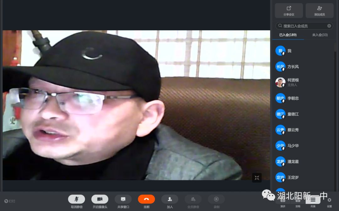 3月16日下午,阳新一中召开2020年春季教研教改教学工作专题网络视频会议。校长、党委书记明道树及校委会全体领导、各处室主任、教师发展中心全体成员、各级部主任(党支部书记)、教研组长、备课组长、班主任、40岁以下青年教师和师徒结队教师参加会议。会议由副校长方长风主持。
