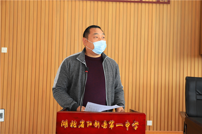 德育室副主任肖鹏宣读市教育局《关于开展2020年春季学期高三复学准备工作专项调研的通知》。