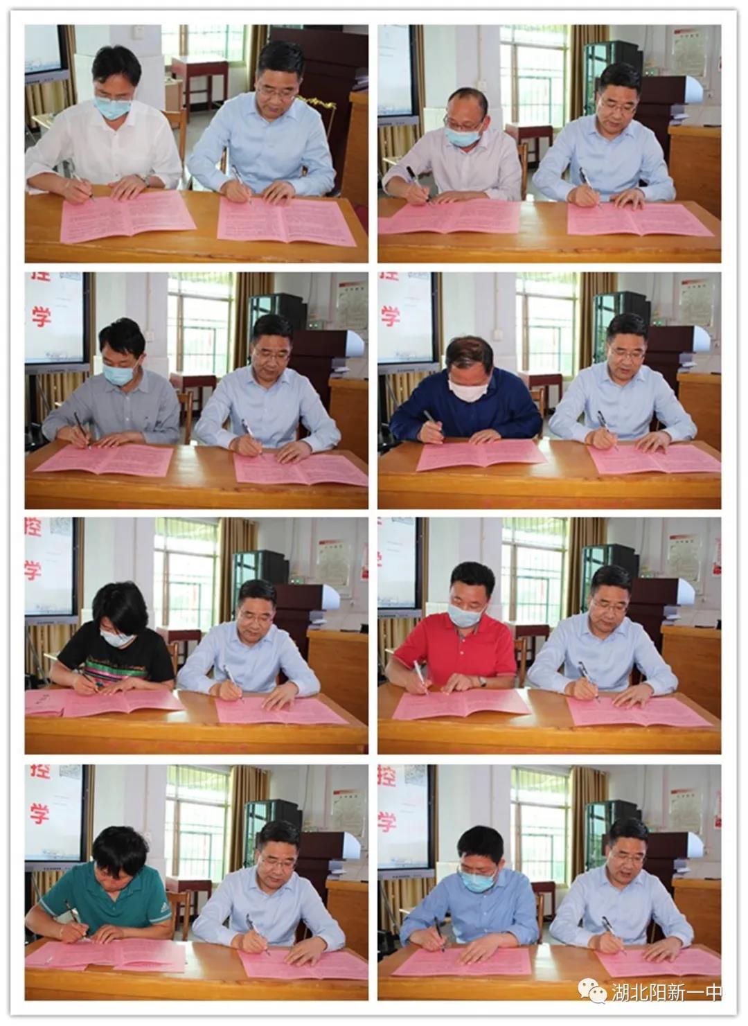 会上,徐美姝主任通报了干部考勤情况。校级领导分别同明校长签订《阳新一中校园疫情防控安全管理责任状》。