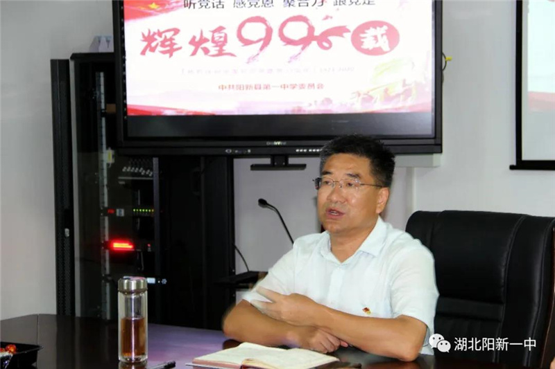 阳新一中党委书记、校长明道树向大家致以节日问候,祝愿各位老党员安度晚年,并希望他们在感情上和舆论上继续支持一中的发展,希望广大党员一如既往地成为一中发展最坚定的力量。明校长指出,共产党员是有理想追求的先进分子,在重要任务面前,特别是疫情防控常态化下,党员干部积极践行初心使命,汇成了一中发展的源动力。支部书记进一步发挥基层党组织思想引领、政治把关、团结教师、凝聚共识的关键作用,切实为学校的长远发展夯基固本。