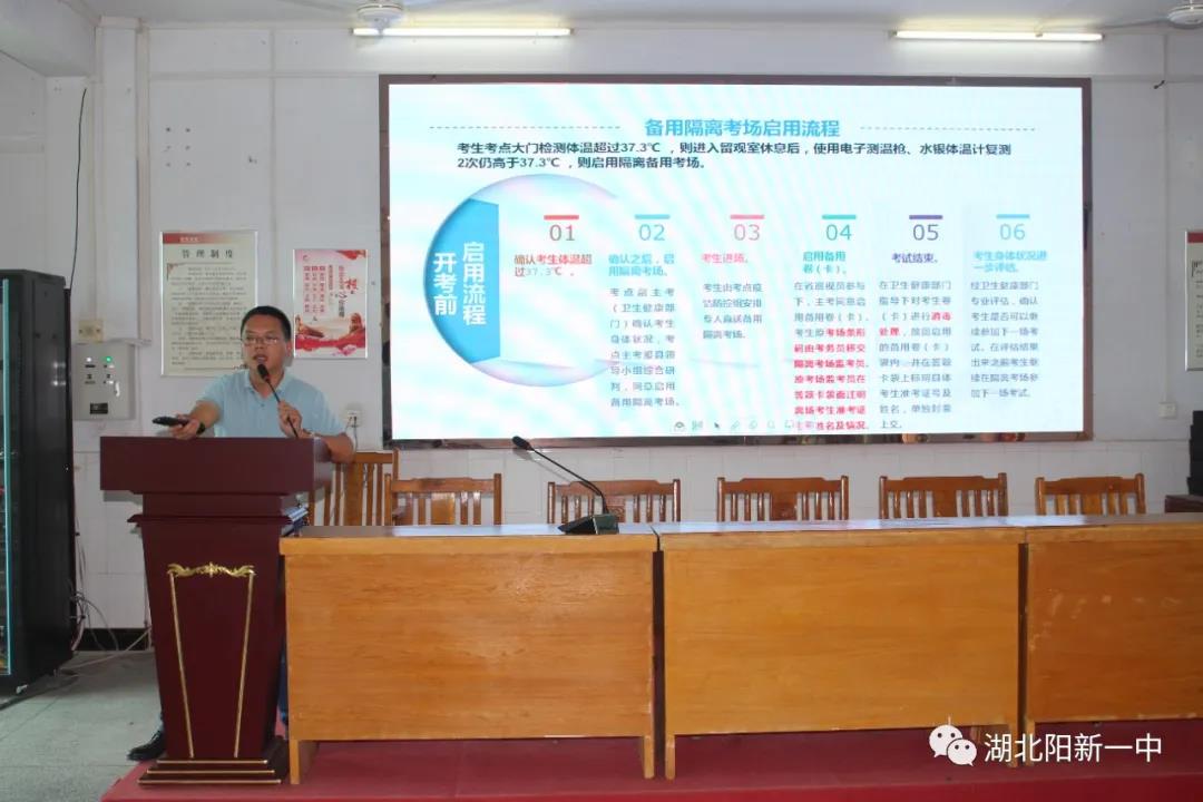 2020年7月1日上午,为进一步熟悉并落实高考考务工作,确保今年高考健康、公平、平稳、诚信、温馨,阳新一中(老校区)在教学楼二楼电教室召开2020届高考考务培训会。阳新一中党委委员、副校长方长风全面部署了高考考务工作。老校区的考务工作人员和监考老师参加了会议。