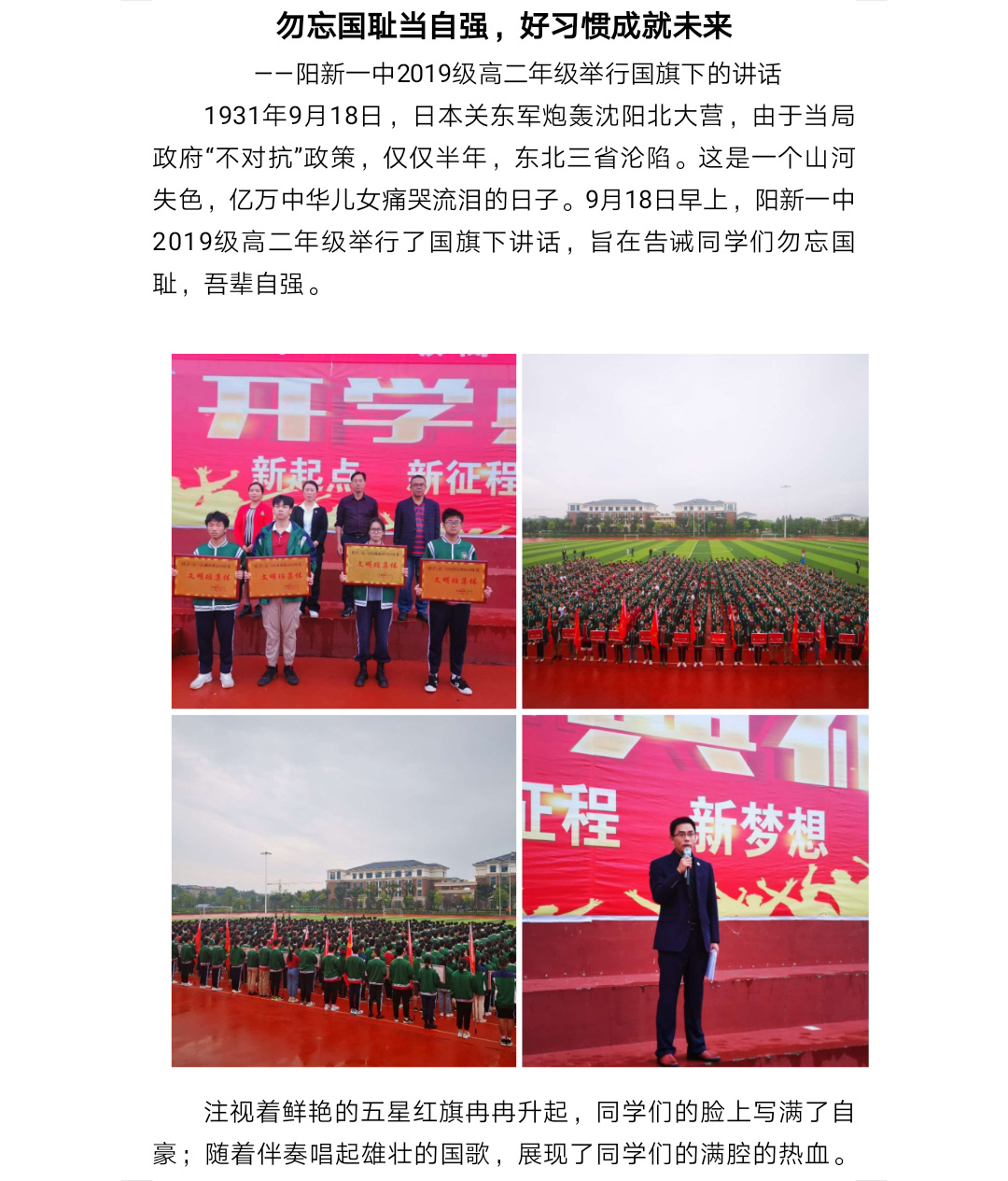 勿忘国耻当自强,好习惯成就未来|2019级高二年级举行国旗下的讲话