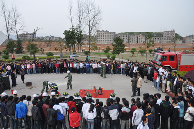 2010321我校政教室发出关于开展安全教育活动周的通知,得到各年级领导和全体班主任的大力支持,各年级先后召开班主任安全教育动员会。在团委的协助下,以班为单位于325下午同时召开安全教育主题班会,并组织学生学习安全行为“八不准”。327下午,组织学生参加消防安全演习。329晚,我校全体学生参加了安全知识竞赛。