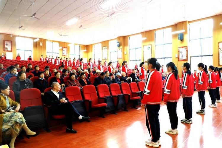 在明德楼报告厅,一曲《感恩的心》拉开了重阳节欢庆会的序幕。“感恩的心,感谢有您!”高一(6)班全体同学为老教师们献歌一首送上祝福,赢得阵阵掌声。