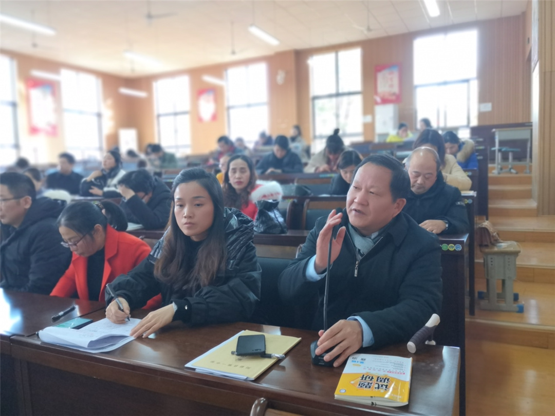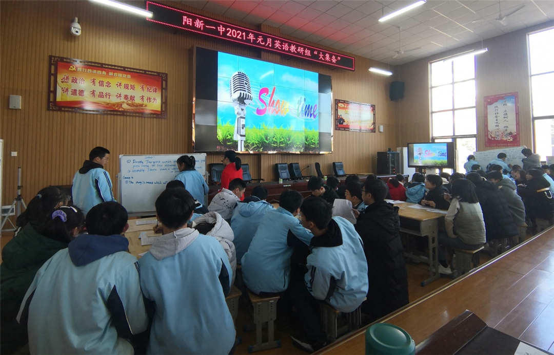 1月14日下午,阳新一中英语教研组在明道楼报告厅开展“大集备”活动。阳新一中英语组蹲点校领导柯美宝副校长和全体英语教师参加此次活动,活动由英语教研组长余艳主持。