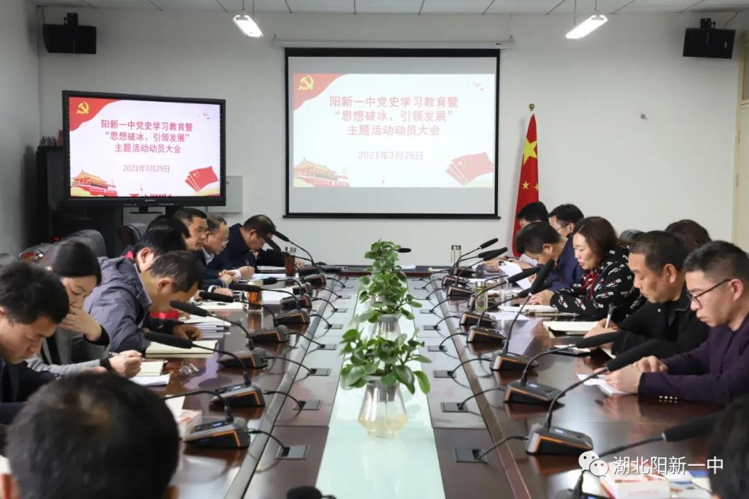 为深入学习贯彻习近平新时代中国特色社会主义思想,巩固深化"不忘初心、牢记使命"主题教育成果,根据党中央和省市县委党史学习教育动员大会精神,结合学校教育教学工作实际,动员党员干部思想破冰、改革破题、担当破局,引领阳新一中向高质量发展。3月29日下午3点,阳新一中在学校至善楼三楼会议室召开党史学习教育暨“思想破冰、引领发展”主题活动动员大会,会议由阳新一中党委副书记潘龙星主持,学校党员干部参加会议。