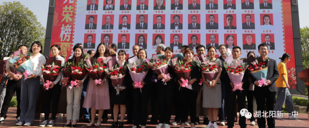 年级主任杨激光宣读了表彰名单,学生代表为成绩优秀的科任老师献花致敬。