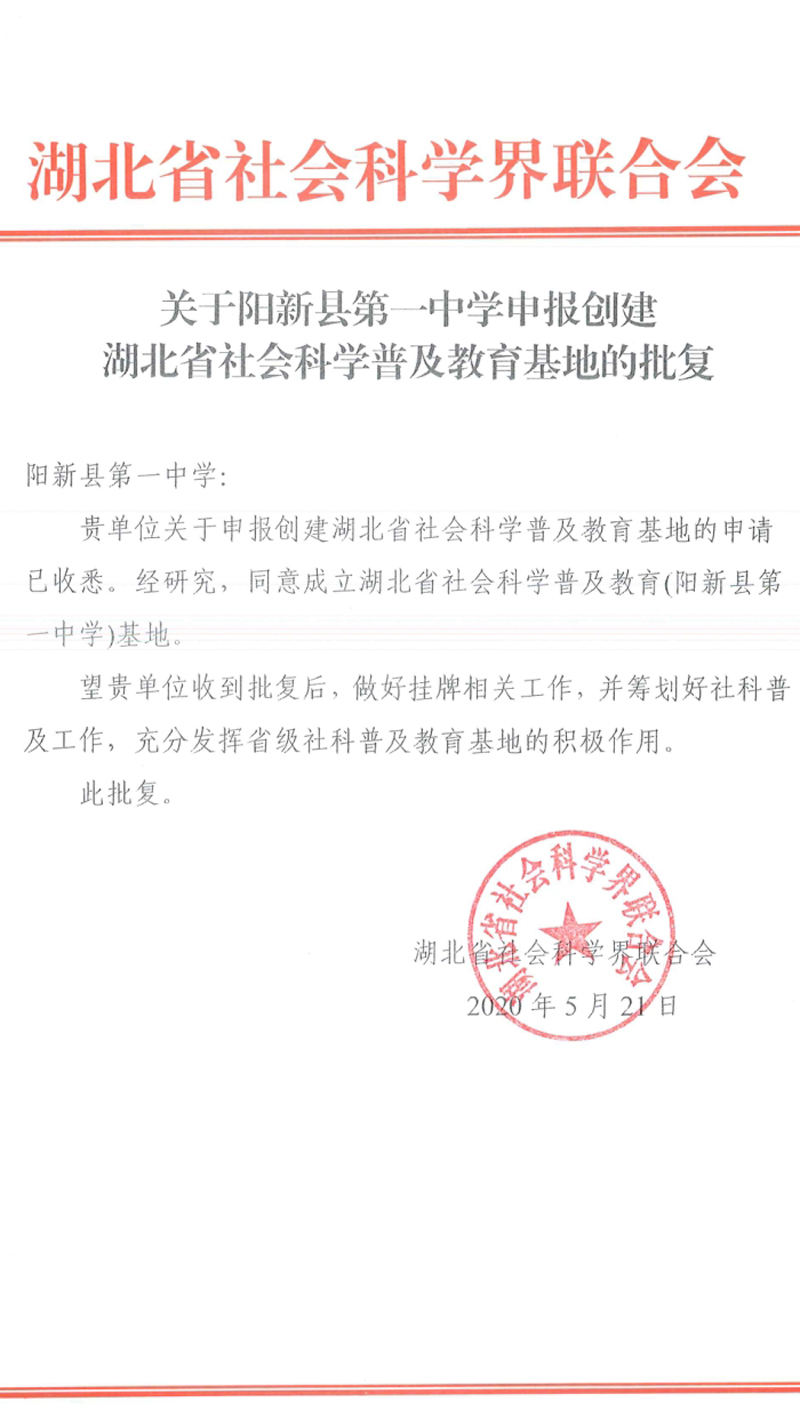 阳新一中正式被评为"湖北省社会科学普及基地"