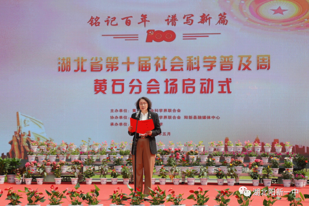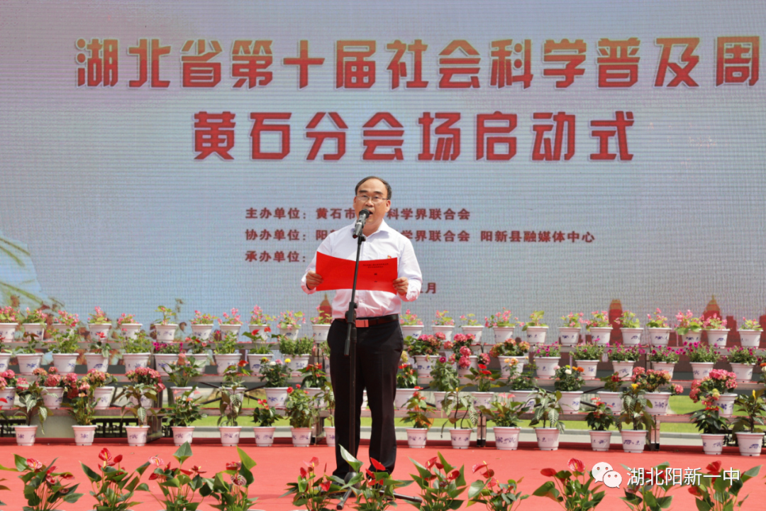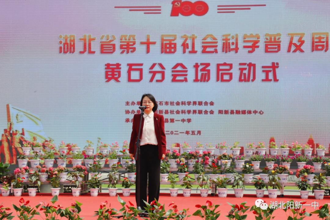 铭记百年,谱写新篇。5月24日上午,湖北省第十届社会科学普及周黄石分会场活动启动式在阳新一中举行。省社科联副主席安向荣、副市长李丽、县委副书记杨波等出席启动式。阳新一中被授予“湖北省社会科学普及教育基地”牌匾。