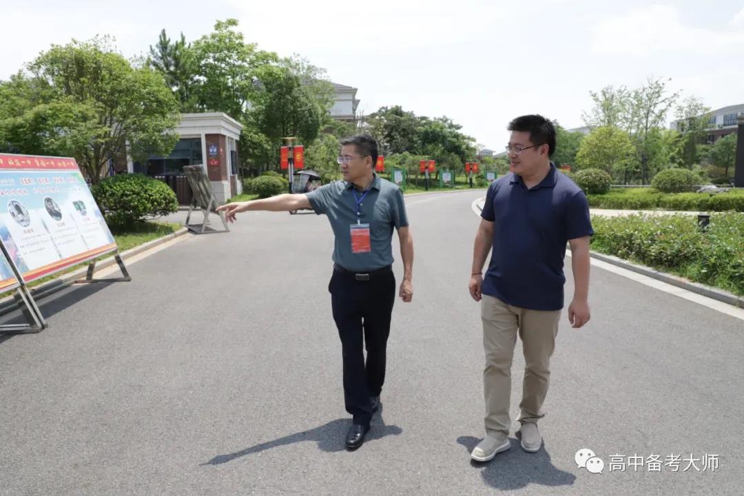 21年06月25日,清华大学驻湖北省招生组张熠教授走进阳新县第一中学,阳新一中党委书记、校长明道树(左)陪同张教授参观校园。