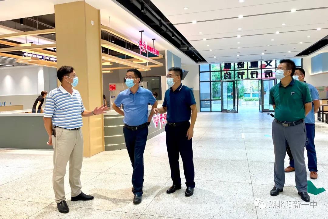 随后,马局长一行实地查看教学楼、食堂、宿舍的卫生情况,深入了解学校各项防疫措施落实、校园安全保障等情况,听取了学校各项工作筹划、运行和进展的详细汇报。马局长充分肯定我校开学准备工作,并提出三点要求:一是做好疫情防控工作,阳新一中校园防疫工作有经验,但仍不可放松,要坚决落实“两案九制”,做好师生的健康管理,全体教职员工要提前做好核酸检测。二是做好校园环境卫生,师生活动场所要坚持每天消杀,不留卫生死角。三是做好学生心理疏导工作,摸排清楚“四困(学困、家困、心困、情困)”学生,建立跟踪档案,开学对这类要多关注、多关心。