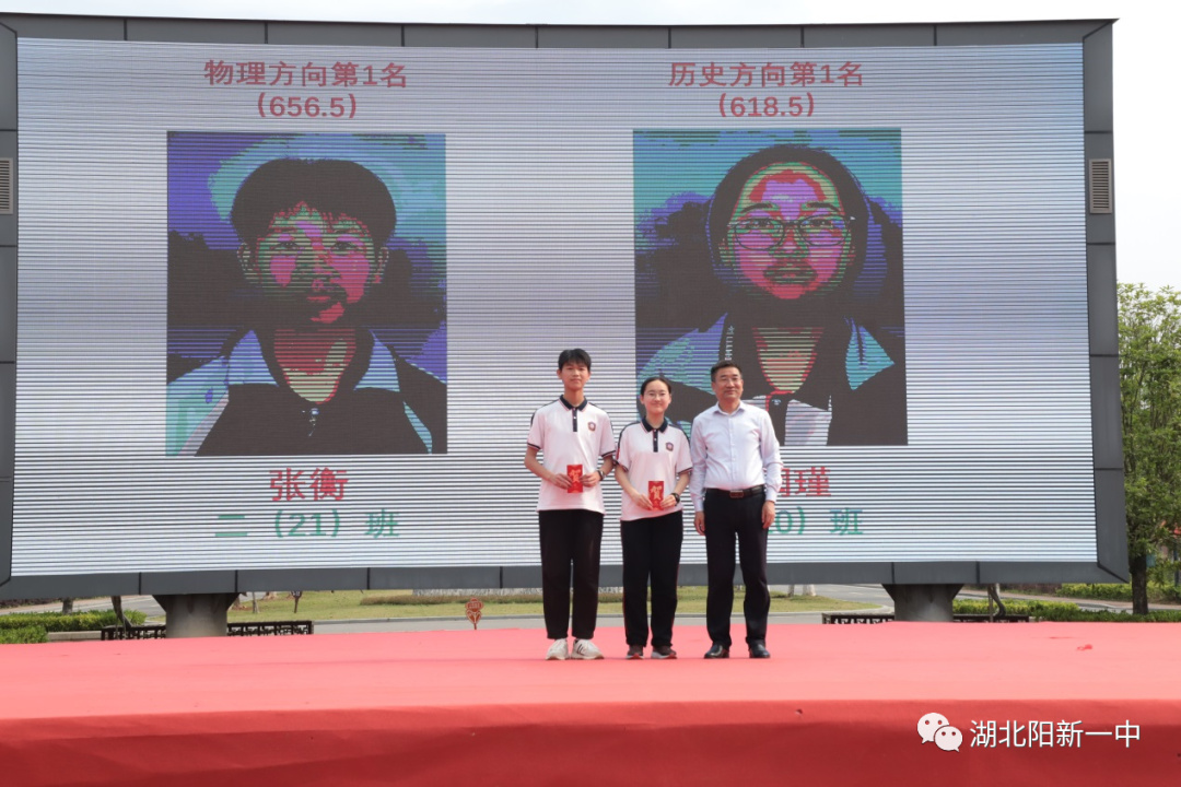 年级副主任陈松林宣读了鄂东南期中联考表彰物理方向前50名、历史方向前15名及各班第1名、智学之星、化学竞赛获奖名单。明校长、江副校长、家委会会长等为受表彰学生颁发荣誉证书、奖金和奖品。
