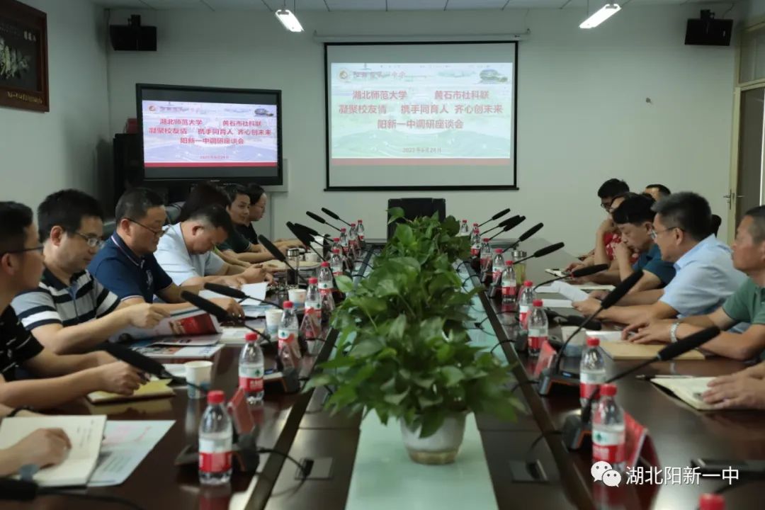 湖北师范大学及黄石社科联等领导在至善楼三楼会议室召开了以“凝聚校友情、携手同育人、齐心创未来”为主题的座谈会。阳新一中校委会成员,毕业于湖北师范大学的一中教师、高三部分班主任参加了座谈会。