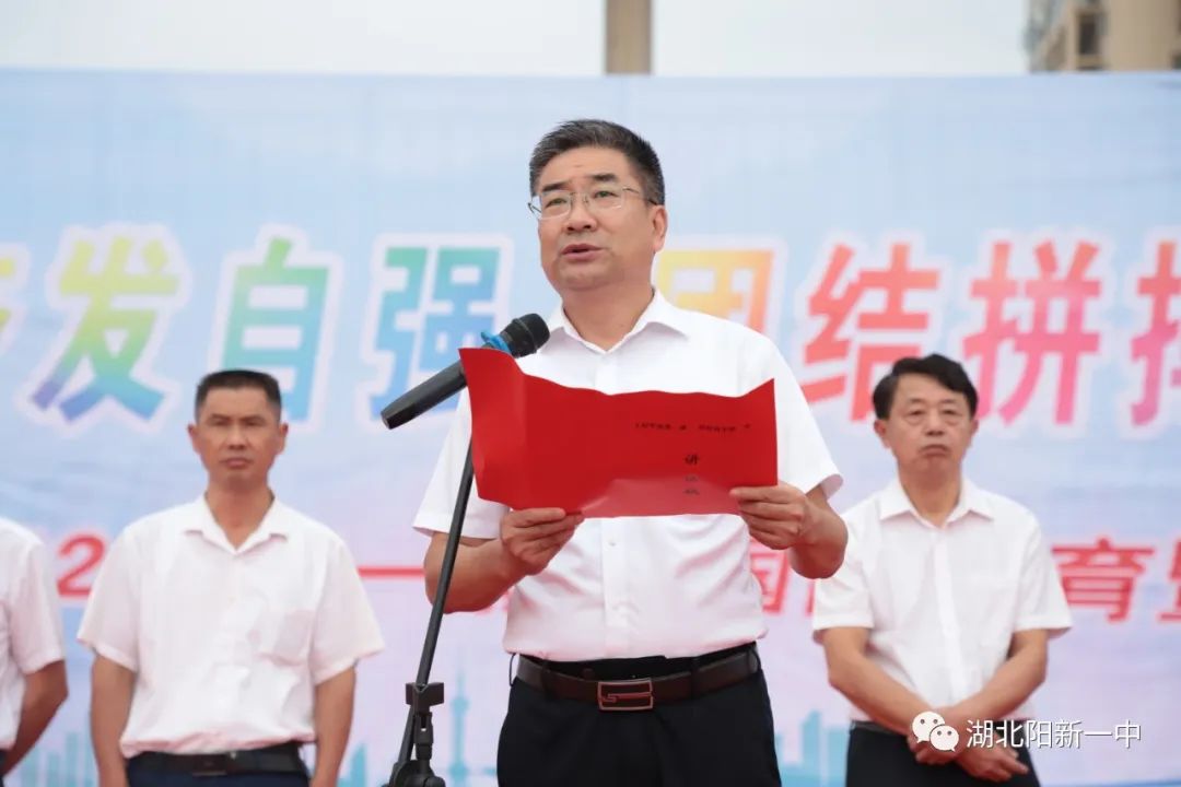 历史硝烟尚未散尽,国际风云变幻莫测,中华民族伟大复兴任重道远。9月3日,中国人民抗日战争胜利纪念日,在这个特别的日子,阳新一中隆重举行2022级高一新生国防教育暨开学典礼。秉承“爱国好学,奋发自强,团结拼搏,勇争第一”的一中精神,2022级新生发出时代最强音:青春向党,强国有我!阳新一中党委书记、校长明道树及全体校委会成员出席开学典礼。高一年级全体师生参加了此次活动。本次活动由副校长徐美姝主持。
