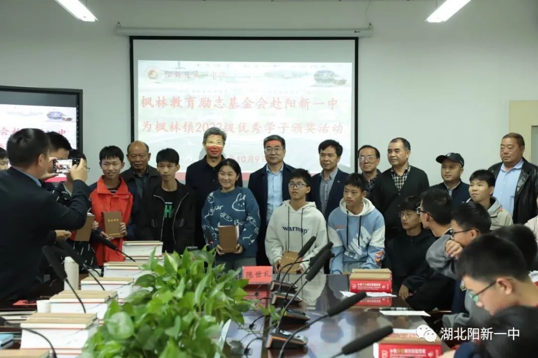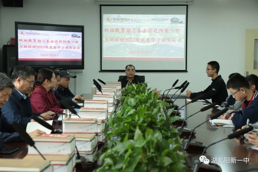 10月9日上午,枫林教育励志基金会领导一行来我校为枫林镇2022年中考被阳新一中录取的45名优秀学子颁发奖品和奖金。活动在校至善楼三楼会议室举行,阳新一中党委书记、校长明道树,党委委员、副校长徐美姝,枫林教育励志基金会领导参加了此次活动。