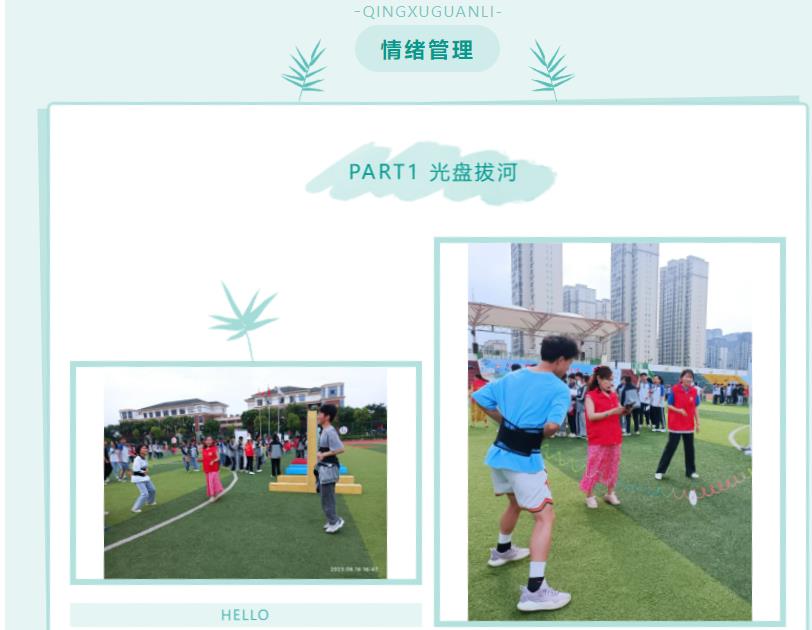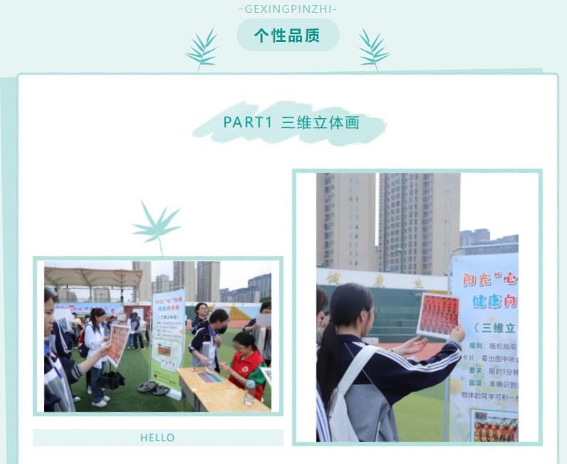 参与同学们满怀好奇的拉着自己的小伙伴,兴高采烈的投入到活动中。心理游园会共设置自我探索、个性品质、情绪管理、人际沟通、自我成长五个环节,设计舒尔特方格、斯特鲁普、三维立体画、勇敢进攻、闪光彩虹卡、人生不设限、坚持不懈、光盘拔河、你演我猜、坐地起身、同心鼓等18个心理主题游戏,同学们参与活动打卡盖章,凭对应的印章数兑换奖品。活动现场气氛热烈,同学们热情高涨。下面让我们一起走进活动的精彩时刻吧!