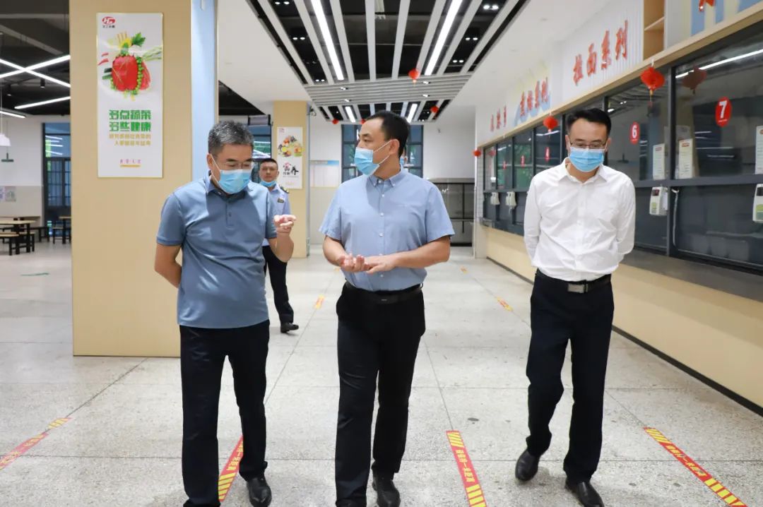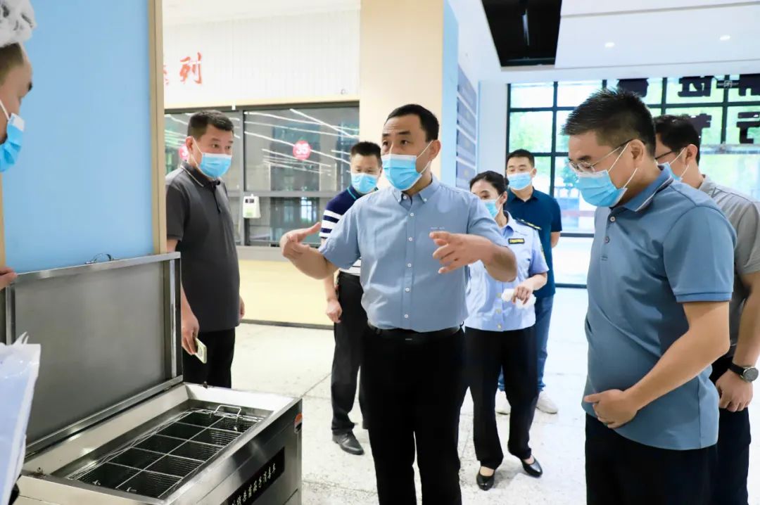 为进一步加强食品安全工作,确保师生身体健康。9月13日上午,阳新县委副书记郭康安、阳新县教育局局长李细禄、县委办副主任柯长安、县市场监督管理局副局长黄雪梅、城东新区党委副书记陈海南来我校检查食品安全“两个责任”落实情况。阳新一中党委书记明道树,副校长徐宏斌陪同检查。