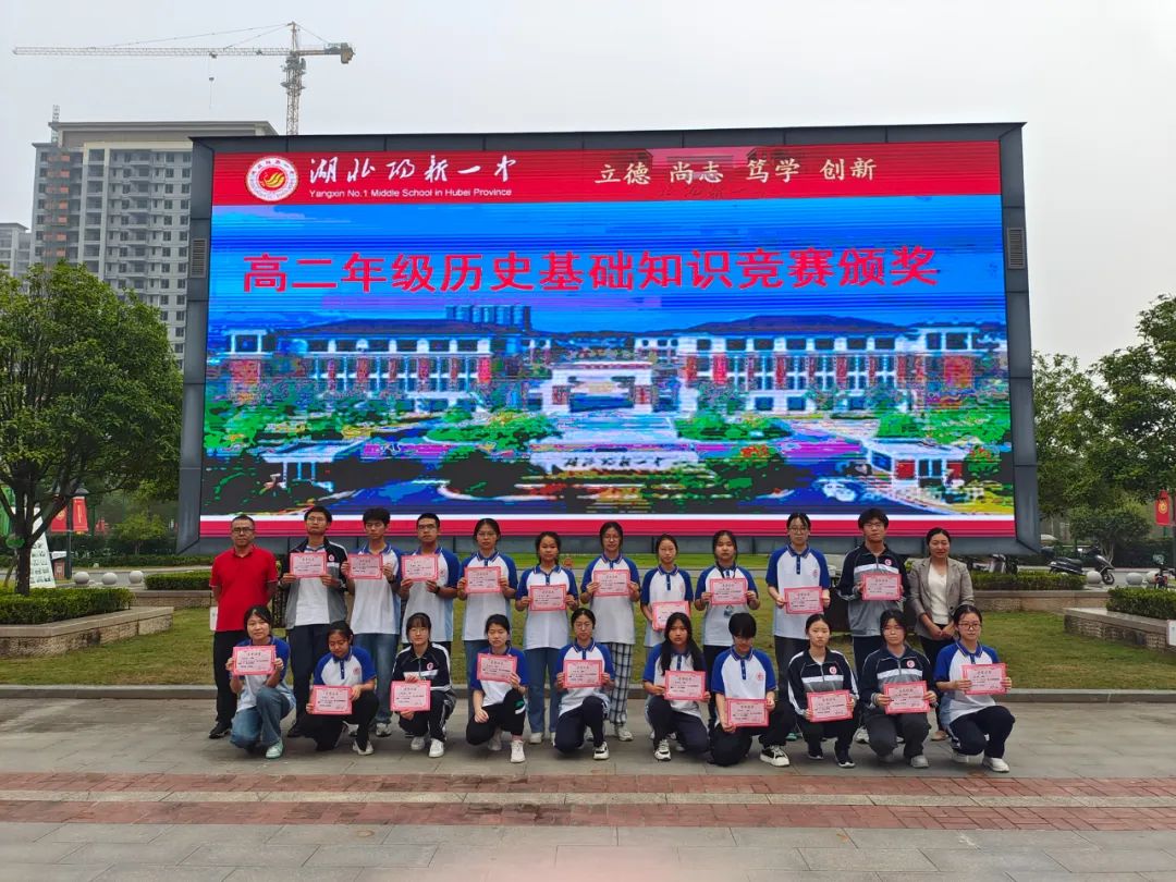 活动第三项为颁奖表扬。舒长华副主任宣读“高二年级历史基础知识竞赛”和“高二年级语文书法比赛”获奖名单。徐美姝副校长和刘军主任为获奖同学颁奖并合影。荣誉如炬,点燃青春梦想;榜样如光,照亮前进之路。舒长华副主任鼓励获奖同学再接再厉,再获佳绩;期待更多同学厚积薄发,勇创佳绩。