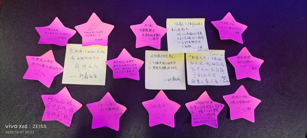 观影结束后,柯淑芳老师让学生回顾整个影片,并加以点评——《十月的天空》这部影片让我们看到了一股强大的力量,那是梦想的力量,执行的力量,坚持的力量,团队的力量,还有支持的力量。 Homer是幸运的,他有朋友们的支持,老师的坚持,小镇居民的帮助,但更多是因为他自己的坚持。他的努力,他的不放弃,使他争取到了人们的帮助和支持、发掘了各种可能性。