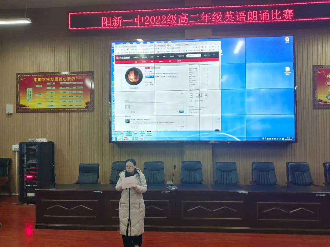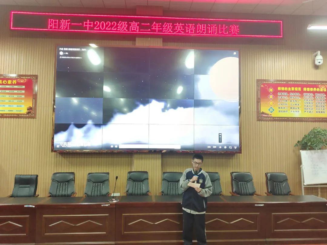 此次活动面向所有高二学生。全体高二英语组老师担任比赛评委,力求做到对每个学生公平公正。比赛分预赛和决赛两部分,预赛在各班进行,每个班挑选出一名学生参加决赛。决赛现场竞争激烈,所有参赛选手为班级荣誉全力以赴,精心准备,或配乐,或用PPT;朗诵素材丰富多彩,有教材中的美文,外刊中的诗歌或名人的演讲稿;选手声音悠扬动听,英语口语标准流畅,表演生动优雅,给在场的所有老师和学生带来了一场视听上的盛宴。