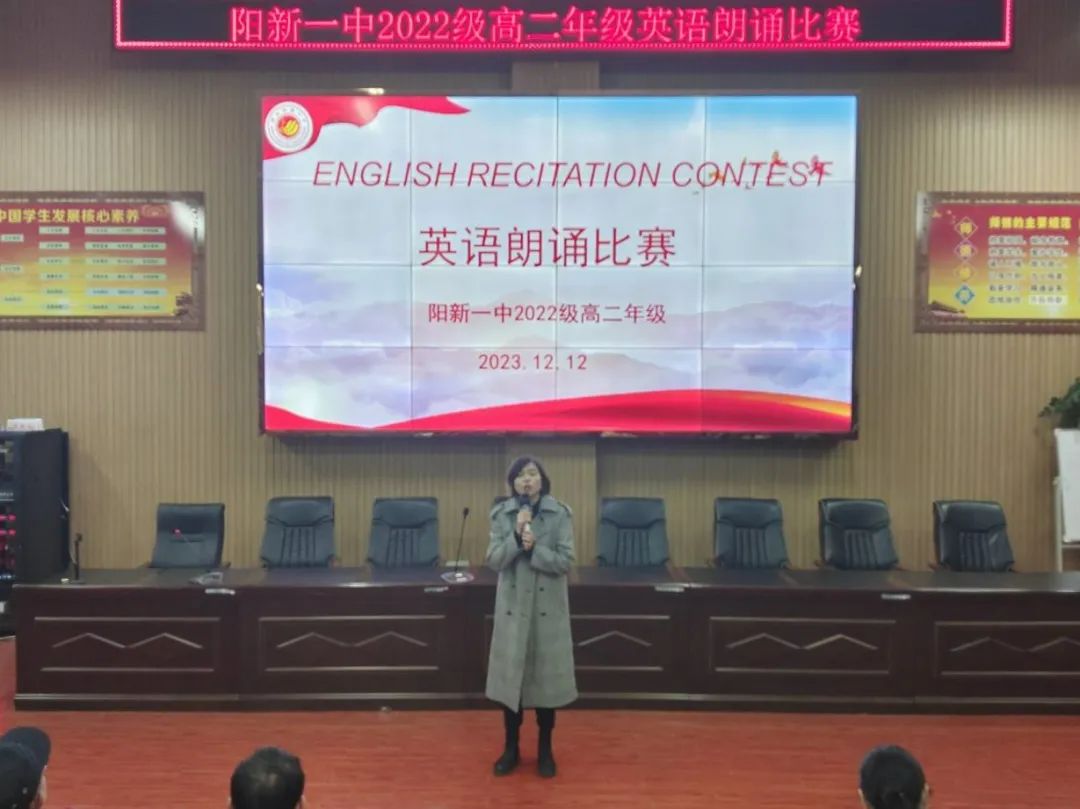 为了丰富学生校园生活,激发学生学习英语的兴趣,增强英语自主学习的意识,营造浓厚的英语学习氛围,12日晚上7点,高二年级英语组在明德楼学术报告厅举行了英语朗诵比赛。徐美姝副校长、英语教研组长余艳及高二英语备课组长柯丽华、李燕带领高二全体英语老师参加了此次活动,活动由黄娟老师主持。
