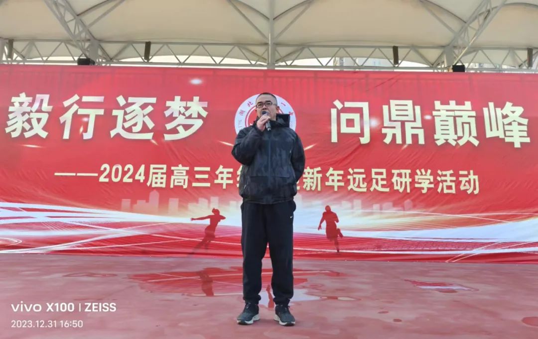 2023年12月31日16:30,高二年级全体师生在学校操场举行了一场庄严肃穆的国旗下讲话活动。本次活动以“回眸2023,展望2024”为主题,旨在激发同学们的爱国热情和责任感。