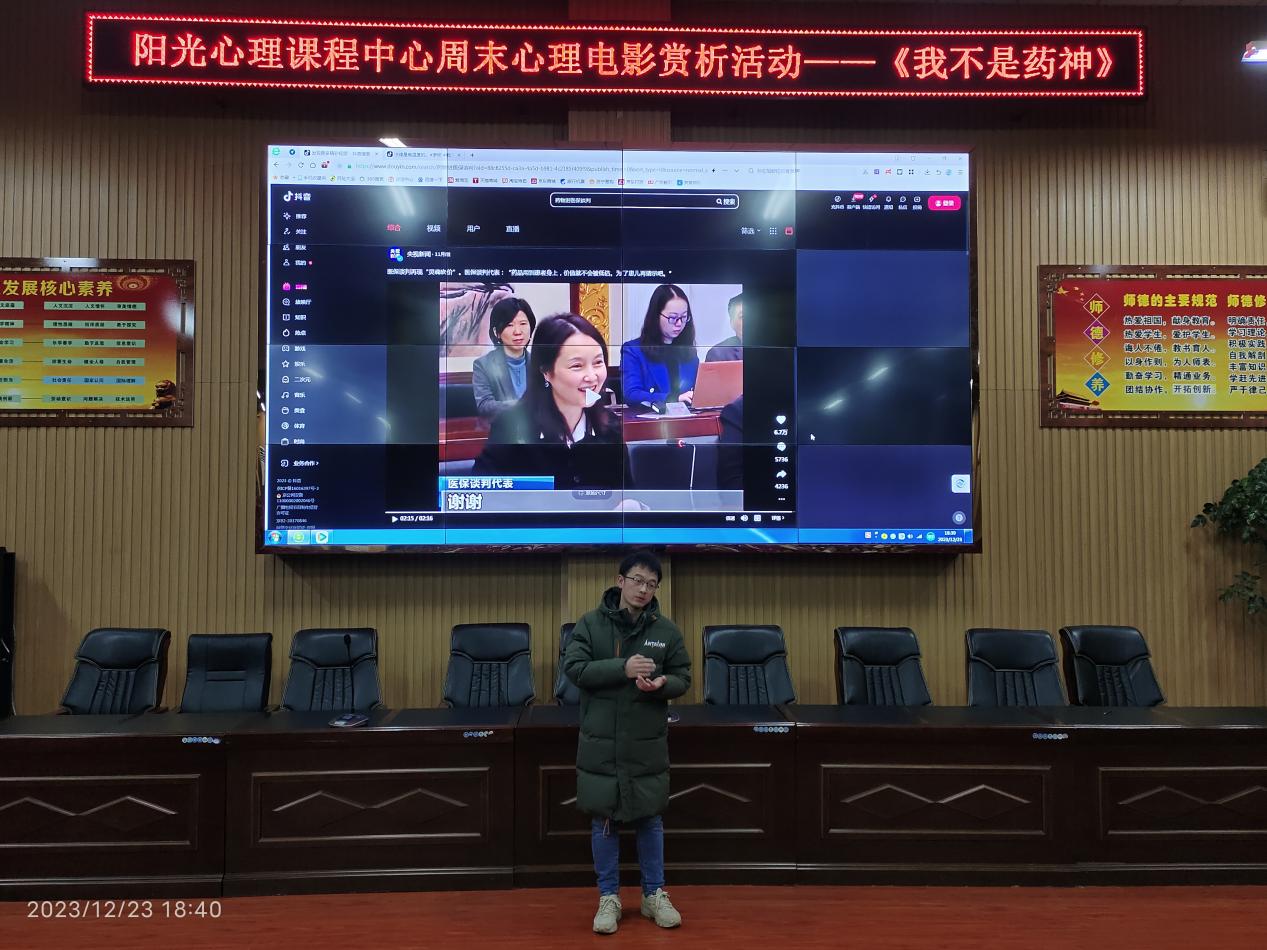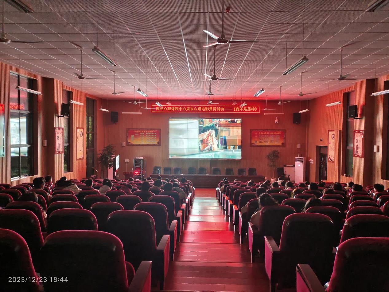 12月23日晚,阳光心理课程中心的周末电影赏析活动如期举行,本次赏析的电影是《我不是药神》,观影活动共有百余名同学参与。