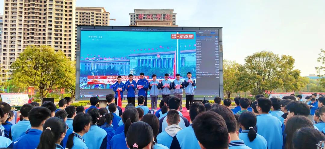 榜样力量,朋辈领航。国旗下讲话在庄严的升国旗仪式中开始,全体师生高唱国歌、行注目礼。