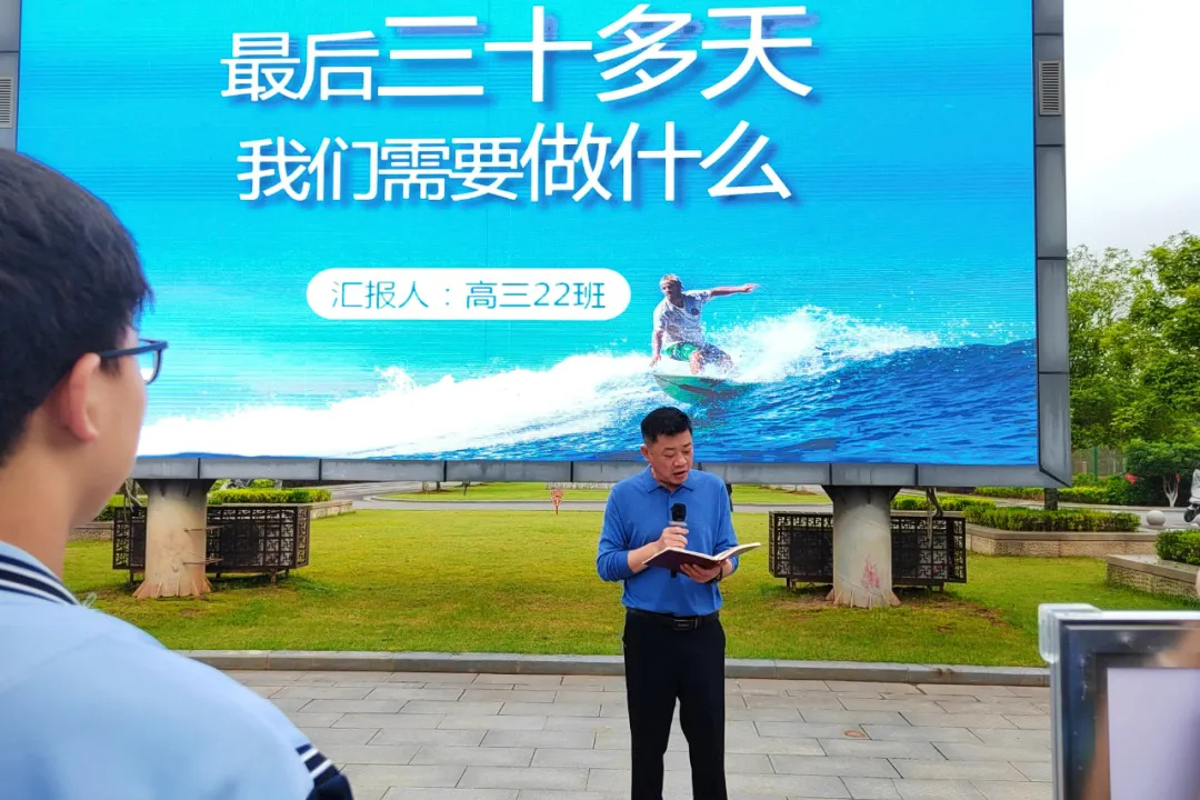 奋斗一个月,昂首一辈子。距离高考仅有38天,针对部分学生存在目标不定、信念不坚、信心不足、意志不强的情况,高三(22)班3名同学带来了围绕最后38天如何精耕细作,提质增效的主题演讲,旨在帮助同学们进一步增强信心、激昂斗志、科学备考。高三(22)班3名同学通过查阅各种资料,结合自身学习体会,并借鉴各种成功经验以PPT讲解、播放短视频等形式从学习、生活、心态三个方面与同学们进行了一次精彩的对话,并带来了阳新一中历届优秀毕业生学长学姐们关于最后38天如何高效备考的成功经验和宝贵建议。