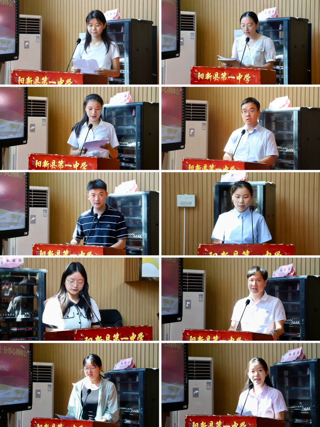 学习三日、收益终身、践行一生。语文组方艳、数学组王淼、英语组陈洁、物理组黄咸超、化学组胡家亮、生物组张羽、历史组尹小聪、政治组汪晓东、地理组李悦、综合组明钥钥。十大学科组代表依次分享培训感悟,学的扎实、悟的深刻、感的真切、总结全面。