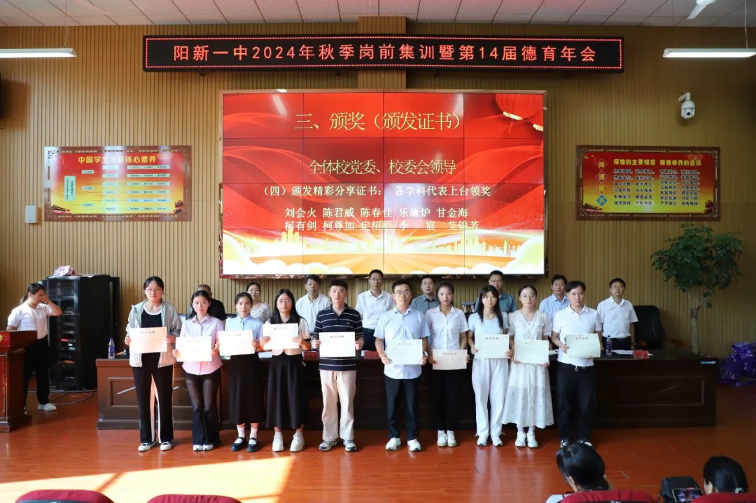 酷暑夏日见证成长,暑期培训完美收官。为表彰先进,树立典型,共享暑期培训成果,2024年8月31日上午,阳新一中在明德楼报告厅召开2024年秋季入学教师岗前全员集训结训式。校党委书记方长风、校长江章令及全体班子成员出席会议,全体教职工参加会议。会议由校党委副书记潘龙星主持。