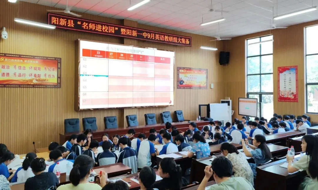 秋风送爽秋意浓,秋收时节硕果丰。为进一步解读新高考,研究新趋势,探讨新路径,助力阳新一中高三英语一轮复习备考,促进英语教学质量提升,9月13日下午,阳新县“名师进校园”暨阳新一中9月英语教研组大集备活动在阳新一中隆重举行。阳新一中副校长徐美姝及阳新各高中学校近百名英语教师参加此次活动。活动由阳新一中英语教研组长余艳主持。
