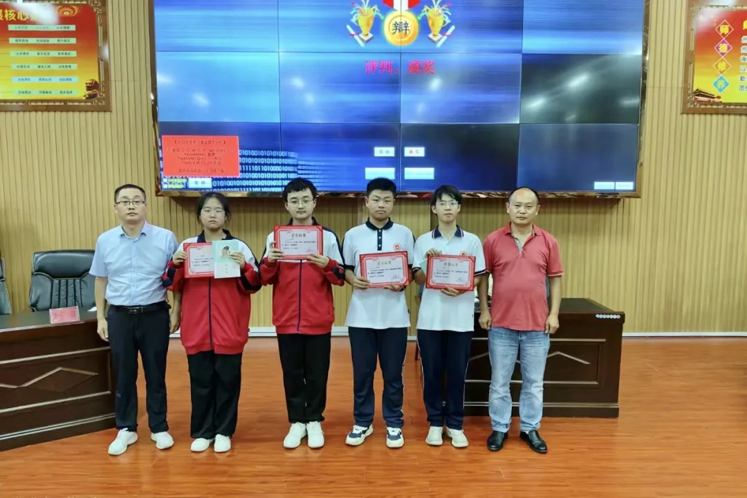 高一年级主任董才振主任宣布了比赛结果。经过激烈的角逐,反方代表队“手机疏远了人们之间的距离”取得本次比赛的胜利。高二(23)班明鑫、高二(23)班肖龙城、高二(22)班刘妍、高一(4)班陈思齐等四位同学被评为优秀辩手;高二(12)班明瑶、 高一(22) 班陈雨兮、高一(21) 班袁嘉琪、高一(16)班成果等四位同学被评为最佳辩手,将代表我校参加黄石市辩论赛。